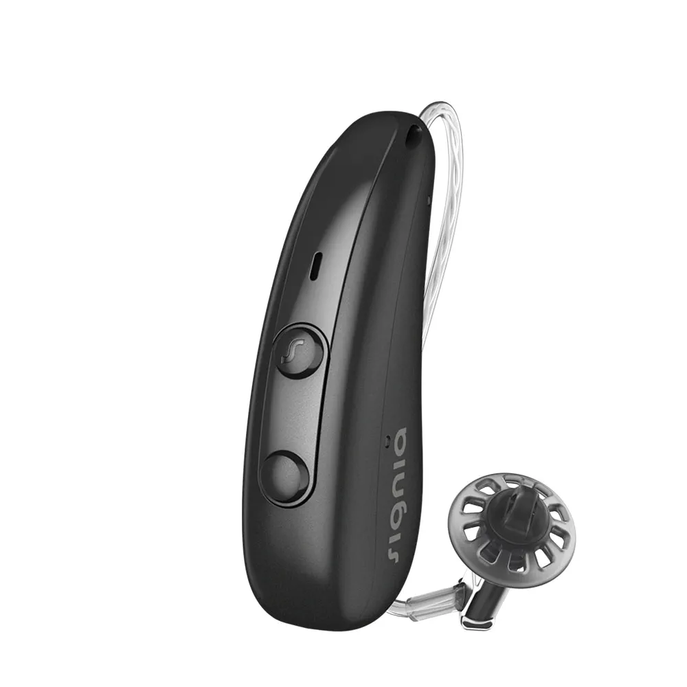 Sophisticated hearing aid technology in a stylish and comfortable receiver-in-canal (RIC) design.